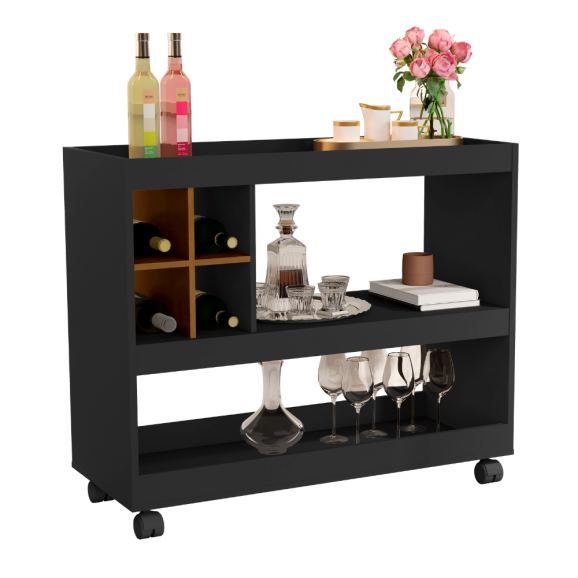 Material MDP Marca JB Bechara Estilo Moderno Prateleiras . Rodízios 04 em Plástico Adega Para 04 Garrafas Altura 75 cm Largura 90.5 cm Profundidade 37 cm Itens Inclusos Manual de Montagem