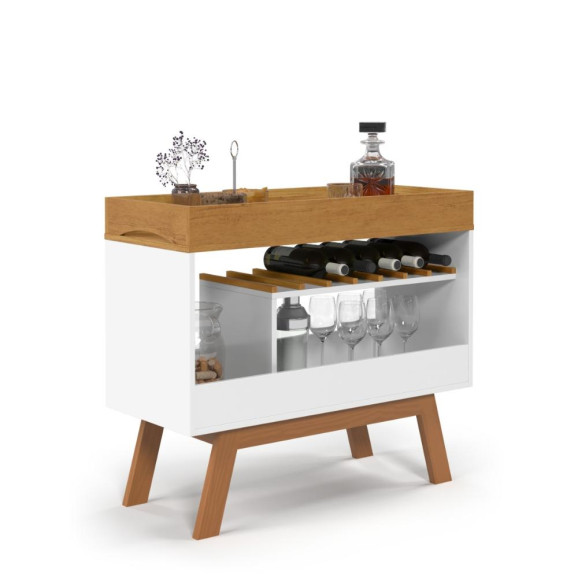 Estrutura MDF; Base em Pinus; Pintura Semi Brilho; Adega para 6 Garradas(opcional); Bandeja Superior (opcional) ;