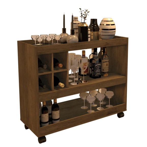 Material MDP Marca JB Bechara Estilo Moderno Prateleiras . Rodízios 04 em Plástico Adega Para 04 Garrafas Altura 75 cm Largura 90.5 cm Profundidade 37 cm Itens Inclusos Manual de Montagem