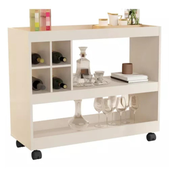 Material MDP Marca JB Bechara Estilo Moderno Prateleiras . Rodízios 04 em Plástico Adega Para 04 Garrafas Altura 75 cm Largura 90.5 cm Profundidade 37 cm Itens Inclusos Manual de Montagem