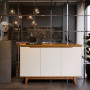 O design prático deste aparador é ressaltado por suas três portas equipadas com dobradiças metálicas, que proporcionam um fechamento suave e seguro. Isso não apenas adiciona um toque moderno, mas também garante um acesso conveniente ao interior do aparador.Os pés em madeira Pinus, com uma altura de 15 cm, conferem uma base estável e elegante ao aparador, elevando-o sutilmente do chão e contribuindo para a sensação de leveza do móvel.
