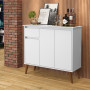 uma combinação perfeita entre design clássico e funcionalidade moderna. Fabricado com materiais de alta qualidade, o aparador é confeccionado em painéis de MDP/MDF de 15 mm, garantindo durabilidade e resistência excepcionais.Os detalhes são um destaque neste móvel encantador. Seus pés retrô em madeira maciça conferem um toque vintage e sofisticado, adicionando charme a qualquer ambiente em que seja colocado.Com uma organização inteligente, o Aparador Veneza oferece amplo espaço de armazenamento. Ele conta com três portas equipadas com dobradiças metálicas, que proporcionam abertura suave e segura. Essas portas ocultam um interior espaçoso, perfeito para guardar utensílios domésticos, louças ou objetos decorativos.