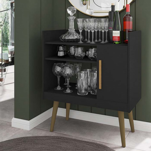 O Aparador Cantinho do Café II traz caracteristicas de um móvel Retrô, e é indicado pra você que sempre quis ter um espaço especial e aconchegante para receber suas visitas ou clientes. Mais um produto da Móveis Bechara, com designer atual, compacto e funcional, é indicado para pequenos espaços. Com ele você pode deixar o ambiente da sua casa ou escritório de cara nova. Produzido em MDP e pés em madeira maciça, possui 1 porta com dobradiças metálicas e puxador revestido em MDF, 2 prateleiras e 2 nichos, ideais para adaptar xícaras, cafeteiras, condimentos, potiches ou objetos de decoração conforme sua necessidade e criatividade. É possível acomodar garrafas de bebida em pé em seu espaço interno.