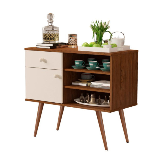 O Aparador Ferrari é ideal para sua sala! Compacto e discreto, mas também muito elegante. Ele possui uma porta, uma gaveta e 2 prateleiras internas, para acomodar bandejas ou até mesmo objeto de decoração, além de contar com um design retro ele irá agregar muito mais charme ao seu ambiente.