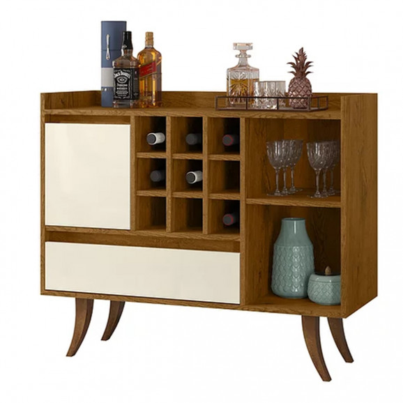 Material MDP Marca EJ Móveis Estilo Retrô Portas 01 em MDP Prateleiras 01 em MDP Número de Gavetas 1 Gaveta Adega Para 09 Garrafas Pés Em Madeira Maciça Altura 85 cm Largura 1,00 m Profundidade 37 cm Itens Inclusos Manual de Montagem