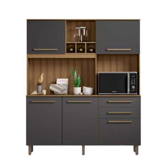 Descrição Armario de Cozinha Completo AGATHA 1,60 Mel/Grafite MADINE