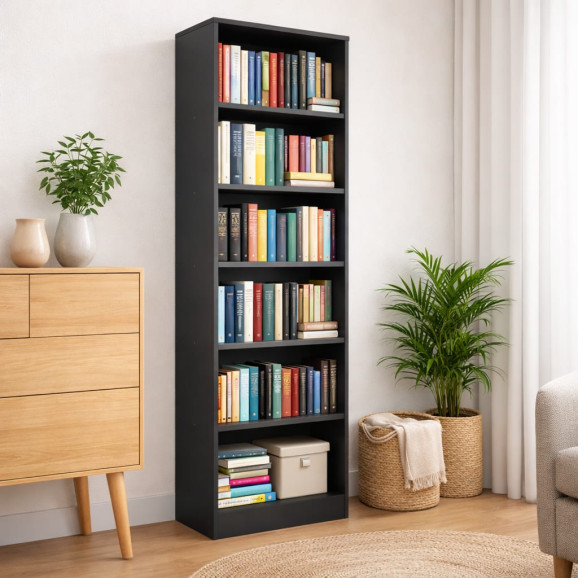 Armário Multiuso Livreiro Ravenna 1,74m com 6 Prateleiras MDP Preto Fosco 2478 – Albatroz