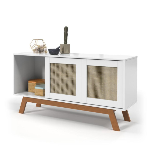 Balcão Buffet Rattan 2 Portas de Correr Branco Ofertamo Móveis