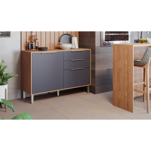 Descrição Balcao Cozinha Divina 120m 100% MDF c/ 2 Portas 2 Gavetas Freijo Titanium MGM