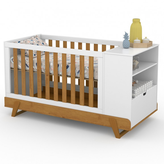 Berço Bkids Matic MultiFuncional 61515 Branco Soft Freijó Eco