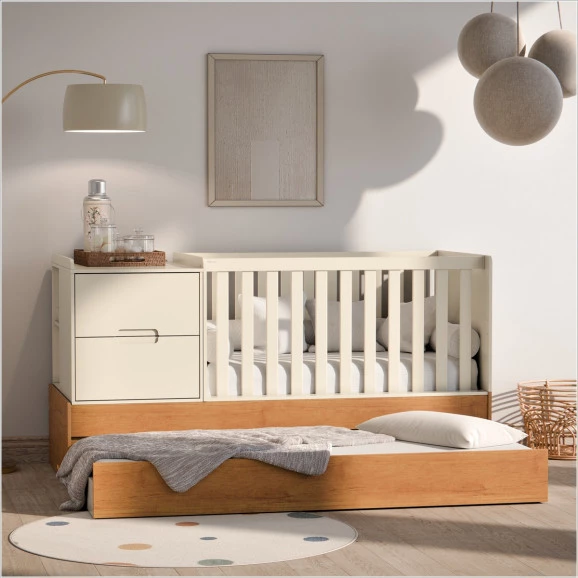 Multifuncional: transforma-se em mini cama, cama auxiliar, escrivaninha, mini cômoda e nicho;