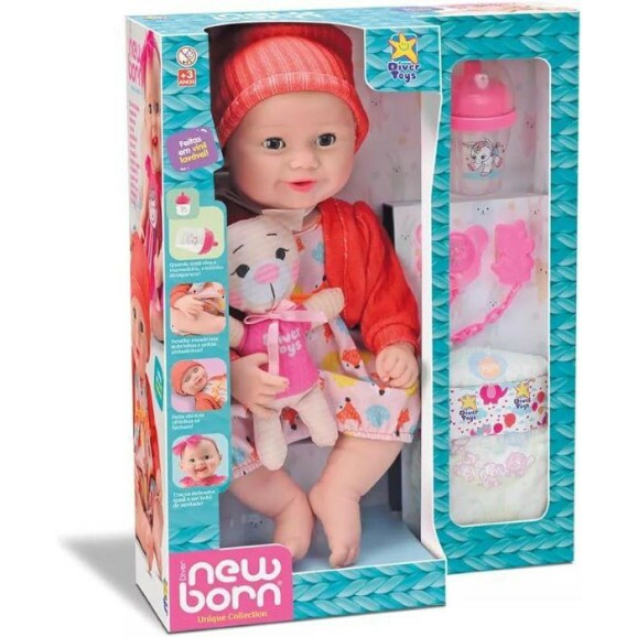 Boneca Diver New Born Unique Collection Body Laranja DivertoysDiversão garantida com a Boneca New Born Unique da Divertoys, que acompanha mamadeira mágica, chupeta com corrente, fralda descartável, touca e ursinho. Tem traços delicados de bebê e linda roupinha. Ela também fecha os olhinhos quando deitada. Com a mamadeira mágica, a criança vira a mamadeira e o leitinho desaparece. Características: - Marca: Divertoys- Modelo: 8203- Dimensões da Embalagem: 40cm, 27cm, 15cm- Código de Barras: 7898639382030- Certificação: INMETRO Recomendado para maiores de 3 Anos. Importante: - Nossos produtos encontram-se em estoque- Todos os produtos são lacrados- Produtos acompanham nota-fiscal e garantiaInformações complementares Acessórios Mamadeira mágica, Chupeta com corrente, Fralda descartável, Touca, Ursinho Certificações INMETRO Conteúdo da Embalagem Boneca, Mamadeira mágica, Chupeta com corrente, Fralda descartável, Touca, Ursinho Cor Laranja Dimensões do Produto com Embalagem 40cm, 27cm, 15cm Idade Recomendada 3 Anos Interatividade Fecha os olhinhos quando deitada Linha New Born Unique Marca Divertoys Modelo 8203 Quantidade de Bonecos 1 Referência 8203 Tema Bebê -