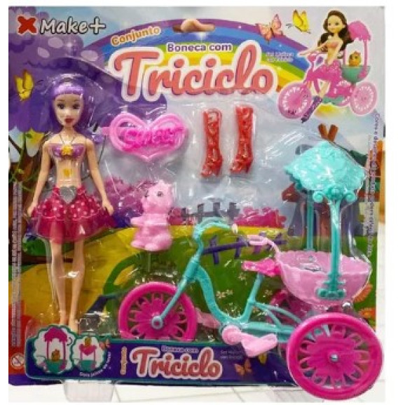 Descrição Conjunto Boneca com Triciclo com 5 Peças Cor Sortida