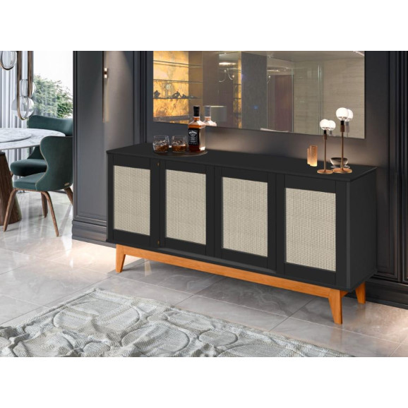 Buffet Detroit 4 Portas Preto Pés madeira Ofertamo