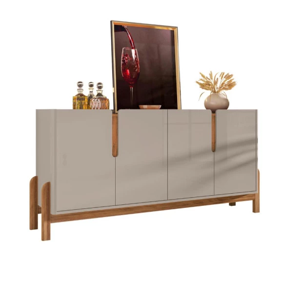 Ideal para organizar melhor sua sala de jantar ou de estar, o Buffet Lizz! . Possui 4 portas e duas prateleiras internas, seus compartimentos internos são ideais para armazenar e organizar diversos tipos de objetos pessoais, além de seu aparelho de jantar e demais itens que sejam necessários. Lindo, robusto e versátil, garante um espaço moderno e organizado. Base e laterais de MDF com cantos arredondados. Estrutura dos pés de madeira maciça.