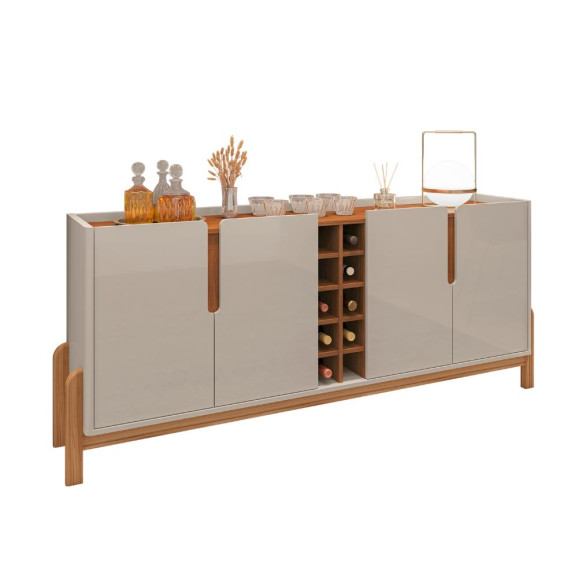 Ideal para organizar melhor sua sala de jantar ou de estar, o Buffet Lizz! . Possui 4 portas e duas prateleiras internas, seus compartimentos internos são ideais para armazenar e organizar diversos tipos de objetos pessoais, além de seu aparelho de jantar e demais itens que sejam necessários. Lindo, robusto e versátil, garante um espaço moderno e organizado. Base e laterais de MDF com cantos arredondados. Estrutura dos pés de madeira maciça. E ainda possui 10 adegas para armazenar suas bebidas com mais facilidade.