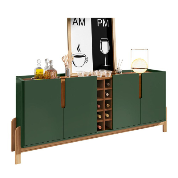 Ideal para organizar melhor sua sala de jantar ou de estar, o Buffet Lizz! . Possui 4 portas e duas prateleiras internas, seus compartimentos internos são ideais para armazenar e organizar diversos tipos de objetos pessoais, além de seu aparelho de jantar e demais itens que sejam necessários. Lindo, robusto e versátil, garante um espaço moderno e organizado. Base e laterais de MDF com cantos arredondados. Estrutura dos pés de madeira maciça. E ainda possui 10 adegas para armazenar suas bebidas com mais facilidade.