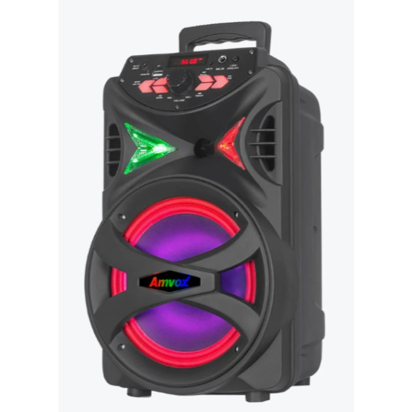 A Caixa Amplificada Amvox ACA 255 HIT combina potência de 250W RMS e qualidade de áudio com mobilidade. Com woofer de 8", tweeter de 4", bateria de 4h, Bluetooth e Power X, oferece versatilidade para festas, karaokês ou uso diário. Suas funções incluem Show de LED, Rádio FM e entradas USB, SD e microfone