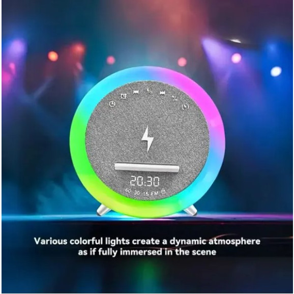 Caixa De Som com Relógio Digital Luz LED RGB e Carregador Por Indução 50W Marca: Eletromex A Caixa de Som com Luminária e Carregador Por Indução é um dispositivo multifuncional projetado para oferecer áudio, iluminação e carregamento em um único aparelho, ideal para mesas de cabeceira ou escritórios. Características principais: -Potência de 50W: Promete um som potente para preencher o ambiente. -Carregamento por Indução: Permite carregar smartphones compatíveis com a tecnologia Qi sem a necessidade de cabos. -Luminária LED: Possui luzes LED com 7 opções de cores, criando diferentes ambientes. -Relógio Digital e Despertador: Funcionalidade adicional para uso na cabeceira. Conectividade: -Bluetooth: Permite reproduzir música sem fio de smartphones e tablets. -Rádio FM: Possibilita sintonizar estações de rádio. -Entrada USB: Permite reproduzir música de pen drives. -Entrada para Cartão TF: Permite reproduzir música de cartões de memória Micro SD. -Design: Moderno e elegante, com dimensões compactas (aproximadamente 17 x 7,5 cm). -Alimentação: Requer estar conectada à tomada para utilizar a função de carregamento por indução. -Controles: Botões para controlar as funções. Especificações Técnicas: -Potência de Saída: 5W (algumas fontes mencionam 50W para a caixa de som em geral, mas a saída específica para o carregamento por indução pode ser menor, como 15W). -Entrada de Carregamento: DC 5V -Frequência Bluetooth: 2.4GHz-2.48GHz -Distância de Transmissão: Até 10 metros -Faixa de Resposta de Frequência: 50Hz a 20KHz -Relação Sinal-Ruído: 75dB -Tensão de Bateria: 3.7V -Bateira: 500mA -