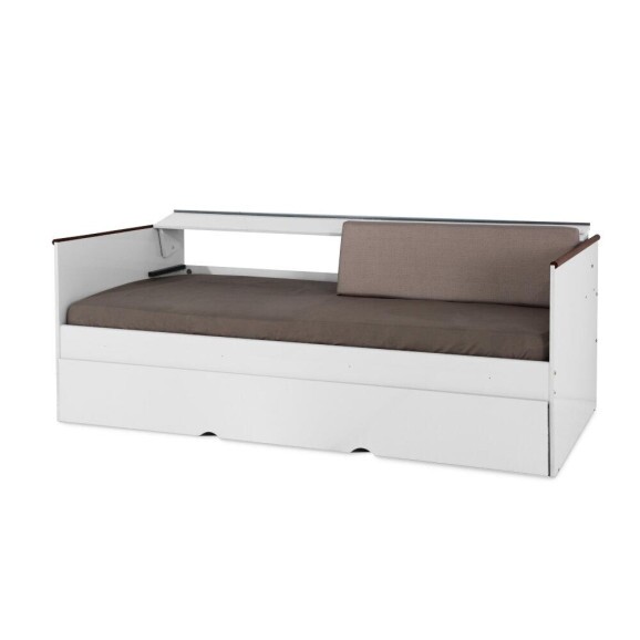 O Sofá Cama Angra, é produzida pela Móveis Tebarrot, possui estrutura em MDF/MDP e acabamento pintura UV Brilhante. Produto com dispositivo no encosto que permite alterar a profundidade, tornando-se cama de solteiro. Acompanha 2 almofadas para encosto de tecido suede e densidade D23 .Dimensões: