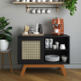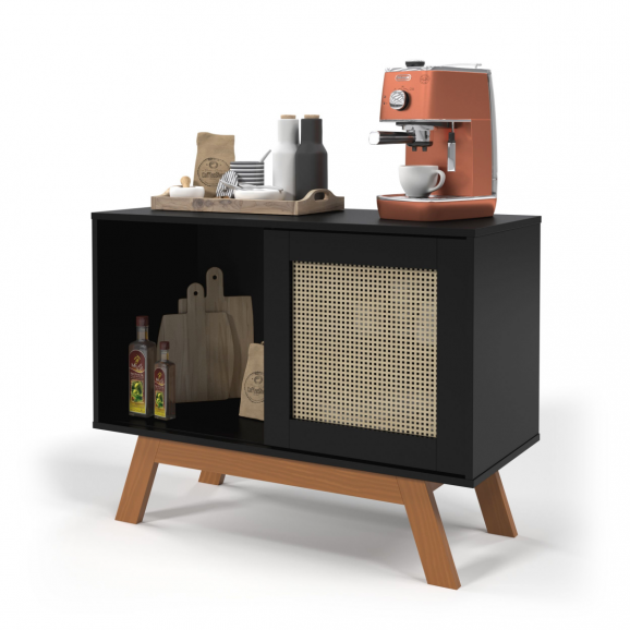 100% MDF; Portas de correr com tela em rattan sintético; Pês em madeira 20 mm;