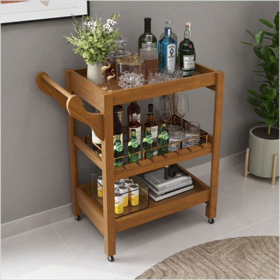 Carrinho Multiuso Server c/ Rodízios Madeira Cor Old Ofertamo