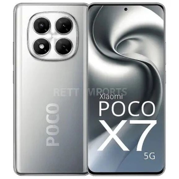 Descrição Smartphone Xiaomi POCO X7 5G, Tela AMOLED, 512GB, 12GB RAM, 6,67 polegadas 120Hz, Câmera 64MP, Bateria 5100mAh, Android, NFC, Dual SIM, PRATA