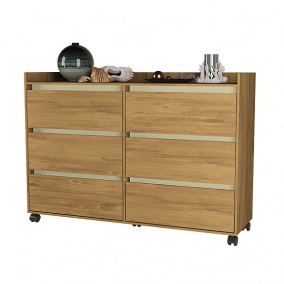 A montagem é de responsabilidade do comprador. Apesar de simples e acompanhar manual de montagem, recomendamos seja realizada por um profissional ou empresa especializada.Material MDP Marca Primus Estilo Moderno Prateleiras . Rodas Sim Número de Gavetas 6 Gavetas Tipo de Corrediça da Gaveta Metálica Puxador Puxador embutido Altura 93 cm Largura 41 cm Profundidade 1,65 m Itens Inclusos Manual de Montagem