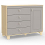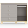 Esta linda Comoda e mais uma criacao da Matic Moveis, com design moderno e diferenciado, agregando charme e beleza ao quartinho do seu bebe. Ela conta com estrutura 100% MDF e base estrutura em madeira, garantindo maior durabilidade do produto. Comoda com quatro gavetas com amplo espaco interno; e porta lateral, ideal para melhor organizacao dos pertences e roupinhas do seu pequeno. E para melhor design do produto, todos os seus puxadores sao em Algodao CRU, para embelezar ainda mais a comoda.