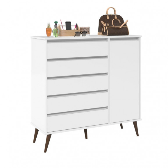 Essa Linda Cômoda Sapateira Rubi é mais uma criação inovadora da EJ Móveis, com design moderno agregando charme e beleza ao ambiente. Ela é produzida em MDP de 15 mm com frentes de gavetas em 12mm, proporcionando maior resistência e durabilidade ao produto. A Cômoda contém cinco gavetas, com corrediças metálicas, facilitando a sua abertura sem enrosco. E para melhorar ainda mais ela acompanha sapateira com prateleira e amplo espaço interno, ideal para organização de seus sapatos.