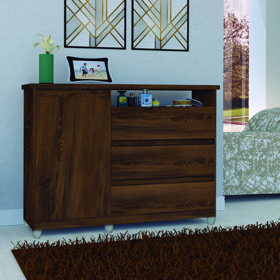 A Primus Móveis vem trazendo uma linha mais inovadora e com qualidade para sua casa, dentre eles essa linda Cômoda Sky, com design moderno e sofisticado agregando charme e beleza ao ambiente. A cômoda contém três gavetas de amplo espaço interno com corrediças metálicas, facilitando na sua abertura sem enrosco. Para melhorar ainda mais a cômoda conta com porta e prateleira interna, ideal para organização de seus sapatos.