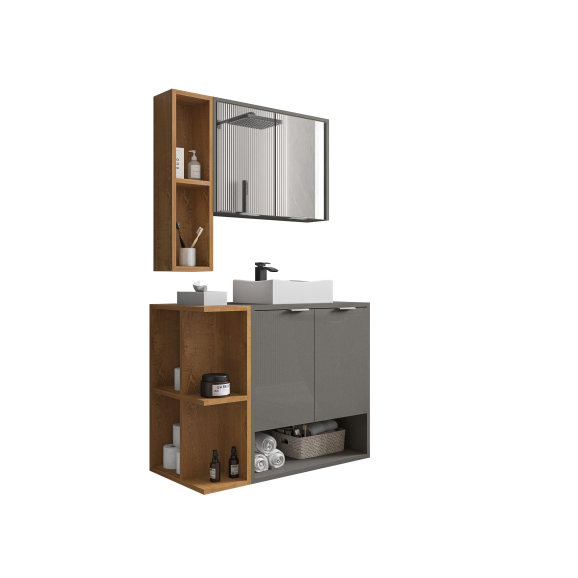 Descrição Conj Banheiro Gabinete Ibiza Titanium Naturalle 2076119 Bechara