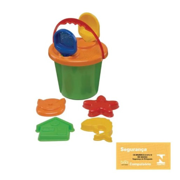 Descrição O Clube do Siri da Mor traz para as crianças o Conjunto Baldinho de Praia com Acessórios 8 peças. Formado por uma pazinha pequena, uma pazinha com peneira, um baldinho com alça, uma peneirinha e quatro forminhas com diferentes formatos: estrela, casa, peixe e gato, que vão fazer a alegria da criançada na areia das praias ou no pátio de casa. Produzido em polipropileno, o conjunto tem peças resistentes em cores vivas e com estrutura segura para não machucar os pequenos. Recomendado para crianças maiores de 3 anos, a Linha Clube do Siri é a diversão que seu filho estava aguardando para este verão!