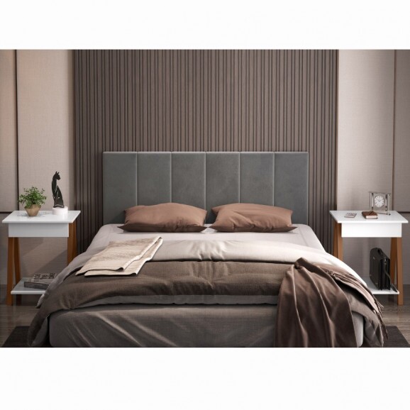 Conjunto Cabeceira 1,40 Cinza e 02 Mesa de Cabeceira 1gaveta Amadeirado/Branco OFERTAMO