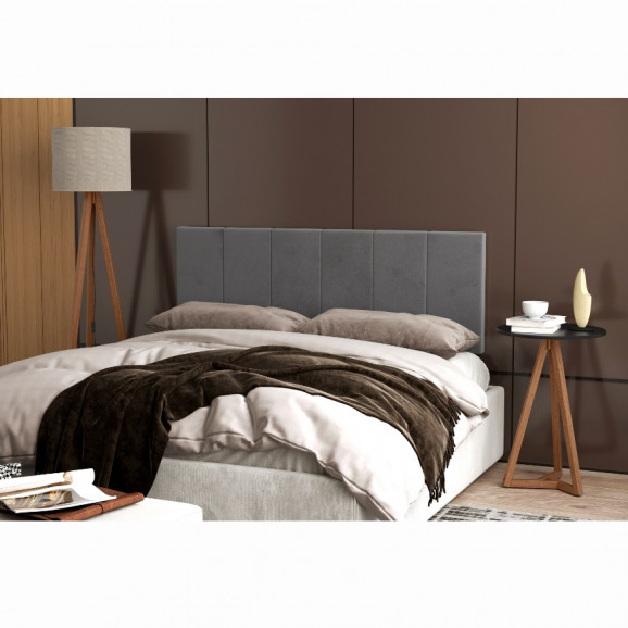 Conjunto Cabeceira 1,60 Cinza c/Mesa Redonda e Luminaria Amadeirado/Preto OFERTAMO