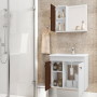 A Móveis Bechara trás produções com alto nível de qualidade. Com uma linha de produtos moderna e inovadora. O Conjunto para Banheiro Munique é perfeito para o seu banheiro. O kit é composto por espelheira, armário e gabinete com lavatório em mármore sintético. Produzido em MDF, com secagem UV e impressão a laser. Tem acabamento com pintura da superfície em verniz poliéster brilhante. O acabamento das bordas é com fita de papel decorativo aplicado mecanicamente por sistema hot melting. Conta com 1 prateleira de vidro na parte superior da espelheira e 2 prateleiras internas em MDF. Puxador de plástico com acabamento cromado e dobradiças metálicas.