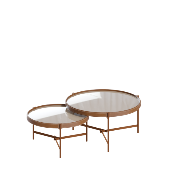 Descrição Conjunto Mesa Centro Aqua Imcal Off White Cobre Redonda Sala