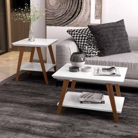 Conjunto Mesa Centro e Mesa Lateral Davi Branco/Amadeirado Ofertamo