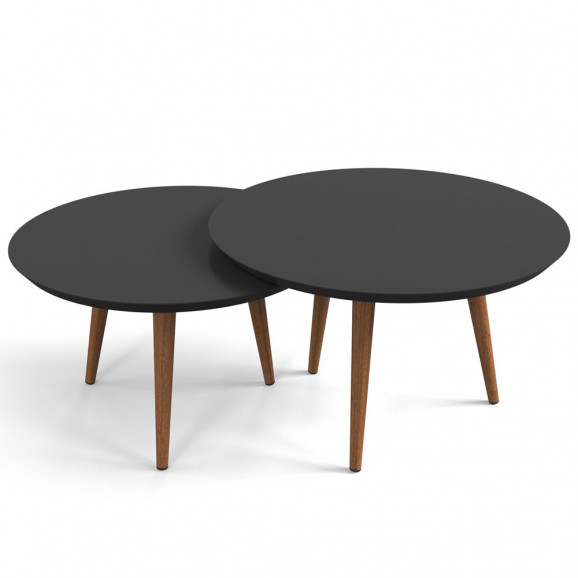 Conjunto Mesa de Centro Luna Pés Palito 67 e 59 Preto Patrimar