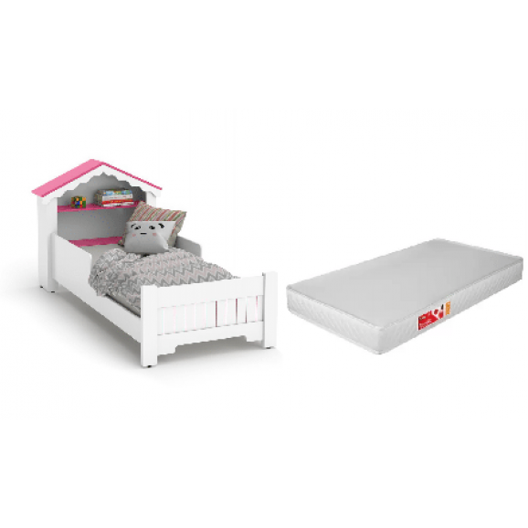 Conjunto Mini Cama Casinha Princesa Branca/Rosa c/ Colchão OFERTAMO