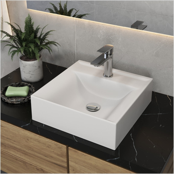 Design quadrado com acabamento liso e contemporâneo