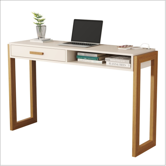 Escrivaninha 1Gav 6055 NEW Perola Pes Madeira Entrada USB JB Bechara