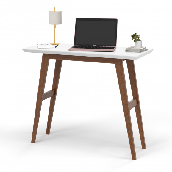 Escrivaninha Harvard 9040 Tampo MDF 30mm pés em Madeira Branco/Amadeirado OFERTAMO