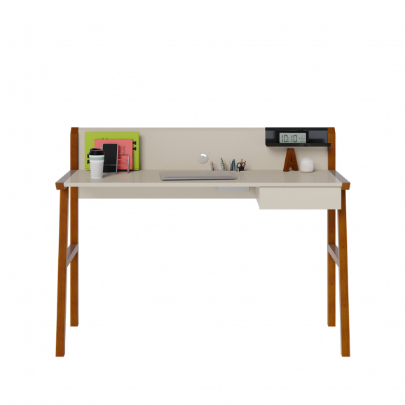 Escrivaninha JOB Pés de Madeira Off White 87411 Imcal Móveis