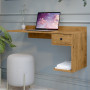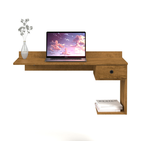 Fabricada com materiais de alta qualidade, o MDF/MDP, a escrivaninha é projetada para resistência e durabilidade, garantindo que você possa desfrutar dela por muitos anos. Com uma gaveta integrada, você terá espaço de armazenamento adicional para manter seus itens essenciais organizados e ao alcance das mãos.Uma característica única desta escrivaninha é a inclusão de uma estante para livros, proporcionando um espaço prático para exibir suas leituras favoritas, itens decorativos ou acessórios de escritório. Sua natureza flutuante adiciona um toque moderno e arejado ao ambiente, criando uma sensação de espaço mesmo em quartos menores.