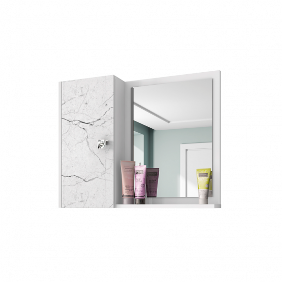 A Móveis Bechara trás produções de excelente nível. Com uma linha de produtos atual e contemporânea. A Espelheira Gênova é o que seu banheiro precisa! Compacta e funcional, possui 1 porta com 1 prateleira interna criando 2 nichos com amplo espaço para organizar pertences de uso diário e higiene pessoal. Conta com espelho fixado e prateleira. Elaborado em MDP com espessura de 12 mm, e acabamento com bordas de fita de papel decorativo mecanicamente aplicado por sistema hot melting e acabamento de superfície por pintura brilhante com verniz e secagem UV. Puxador cromado e dobradiças metálicas, garantem beleza e durabilidade do produto.