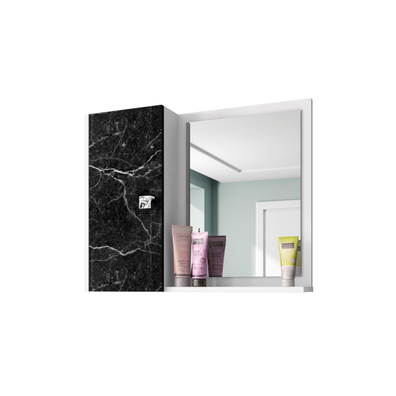 A Móveis Bechara trás produções de excelente nível. Com uma linha de produtos atual e contemporânea. A Espelheira Gênova é o que seu banheiro precisa! Compacta e funcional, possui 1 porta com 1 prateleira interna criando 2 nichos com amplo espaço para organizar pertences de uso diário e higiene pessoal. Conta com espelho fixado e prateleira. Elaborado em MDP com espessura de 12 mm, e acabamento com bordas de fita de papel decorativo mecanicamente aplicado por sistema hot melting e acabamento de superfície por pintura brilhante com verniz e secagem UV. Puxador cromado e dobradiças metálicas, garantem beleza e durabilidade do produto.