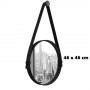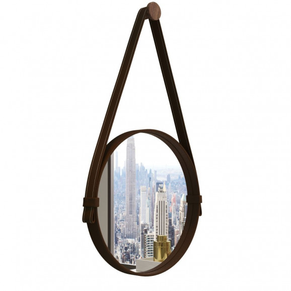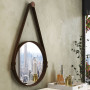 Espelho com moldura redonda e alça revestido com material sintético de alta qualidade;