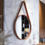* Espelho com moldura redonda e alça, revestido com material sintético de alta qualidade;
