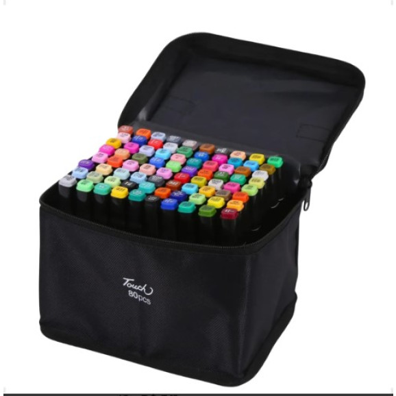 Cada caneta possui duas pontas, uma fina e uma mais grossa, oferecendo versatilidade para seu trabalho artístico. Com um total de 160 pontas, as possibilidades de criação são amplas. Os marcadores são à base de álcool, proporcionando aplicação suave e uniforme, e são livres de odores, adequados para uso até por crianças.